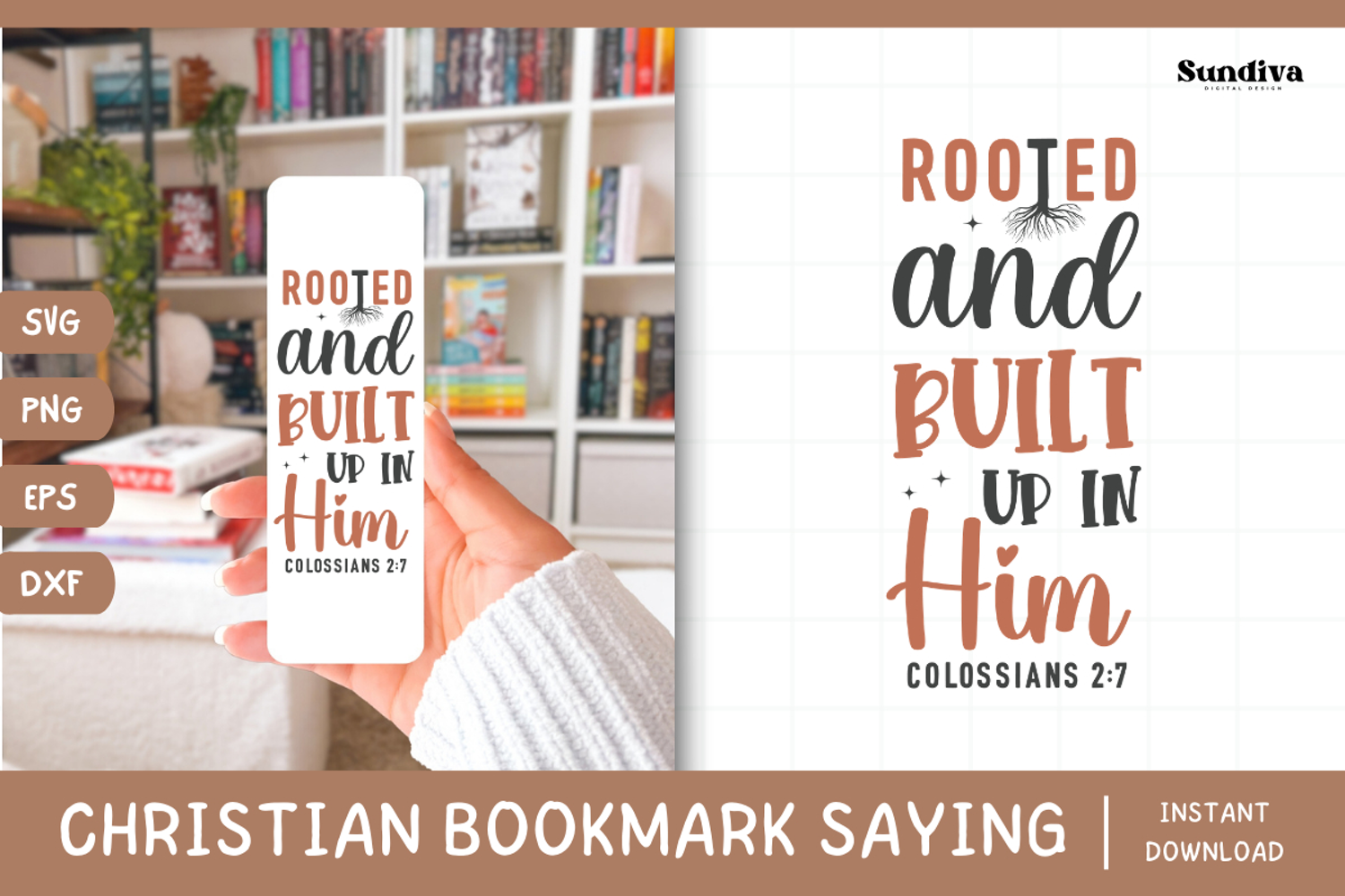 Christian Bookmark Saying SVG | Rooted and Built Up in Him