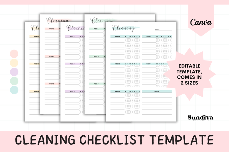 You can edit the template in Canva or print the ready-to-use PDF files. Available in A4 and US Letter, this checklist is perfect for organizing your home cleaning schedule and tracking progress week by week.
