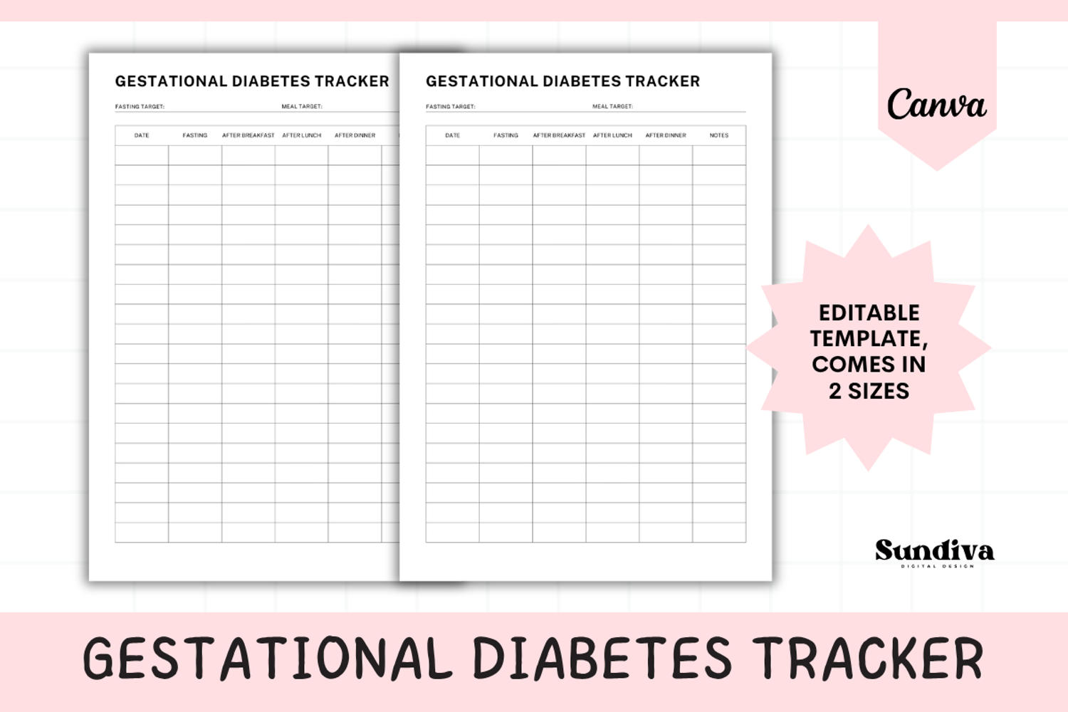 You can edit the template in Canva or use the ready-to-print PDF files. Available in A4 and US Letter, this tracker is perfect for daily use, doctor visits, and managing gestational diabetes.