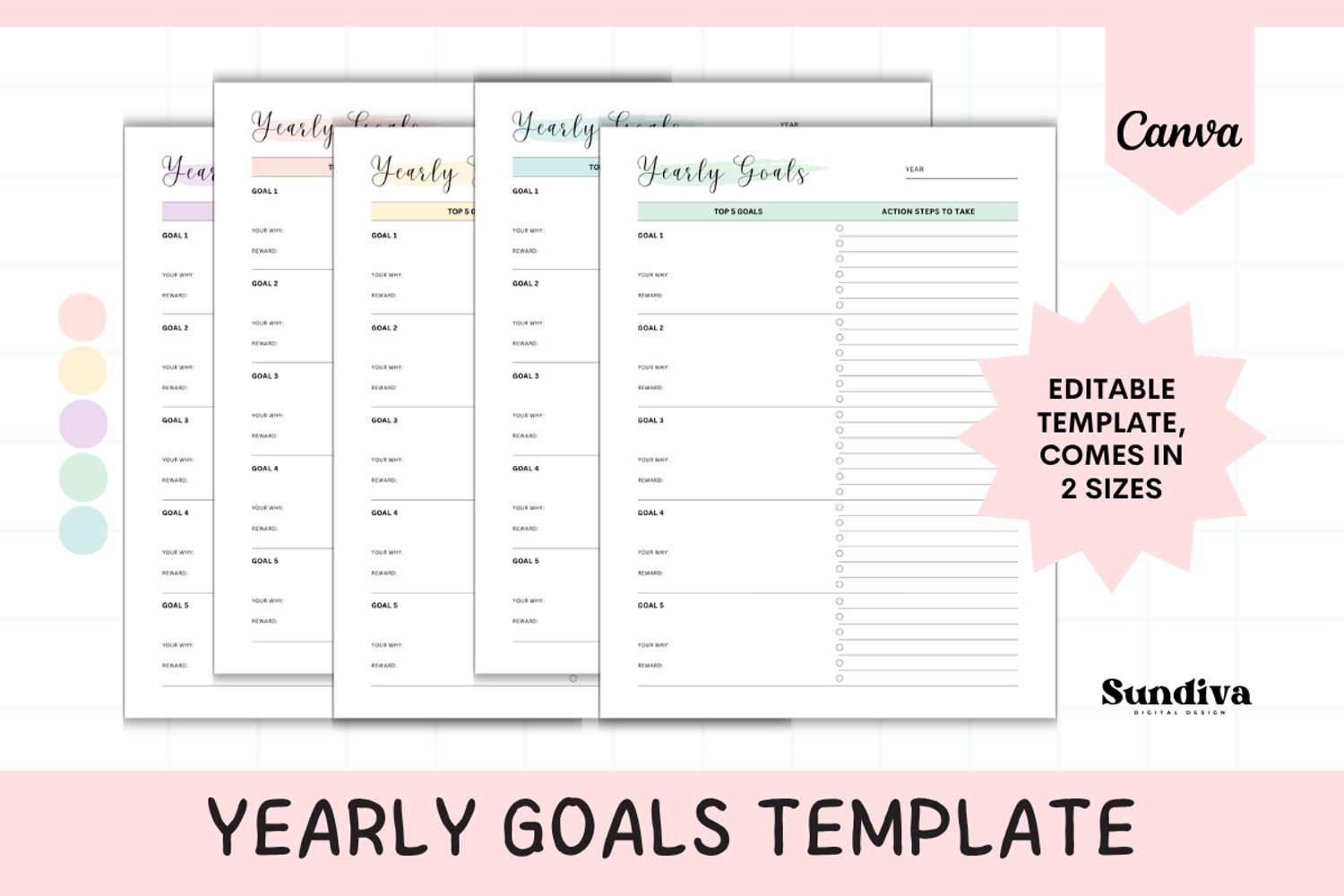 Similar Design Products to Yearly Goals Printable & Editable Template 2