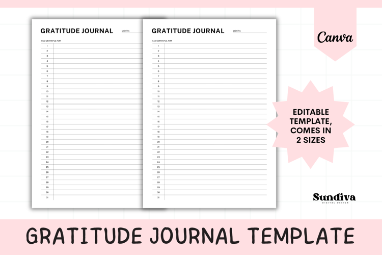 Build a positive mindset with this Gratitude Journal Printable & Editable Canva Template. This simple and clean layout helps you practice daily gratitude with space to write what you’re thankful for each day of the month.