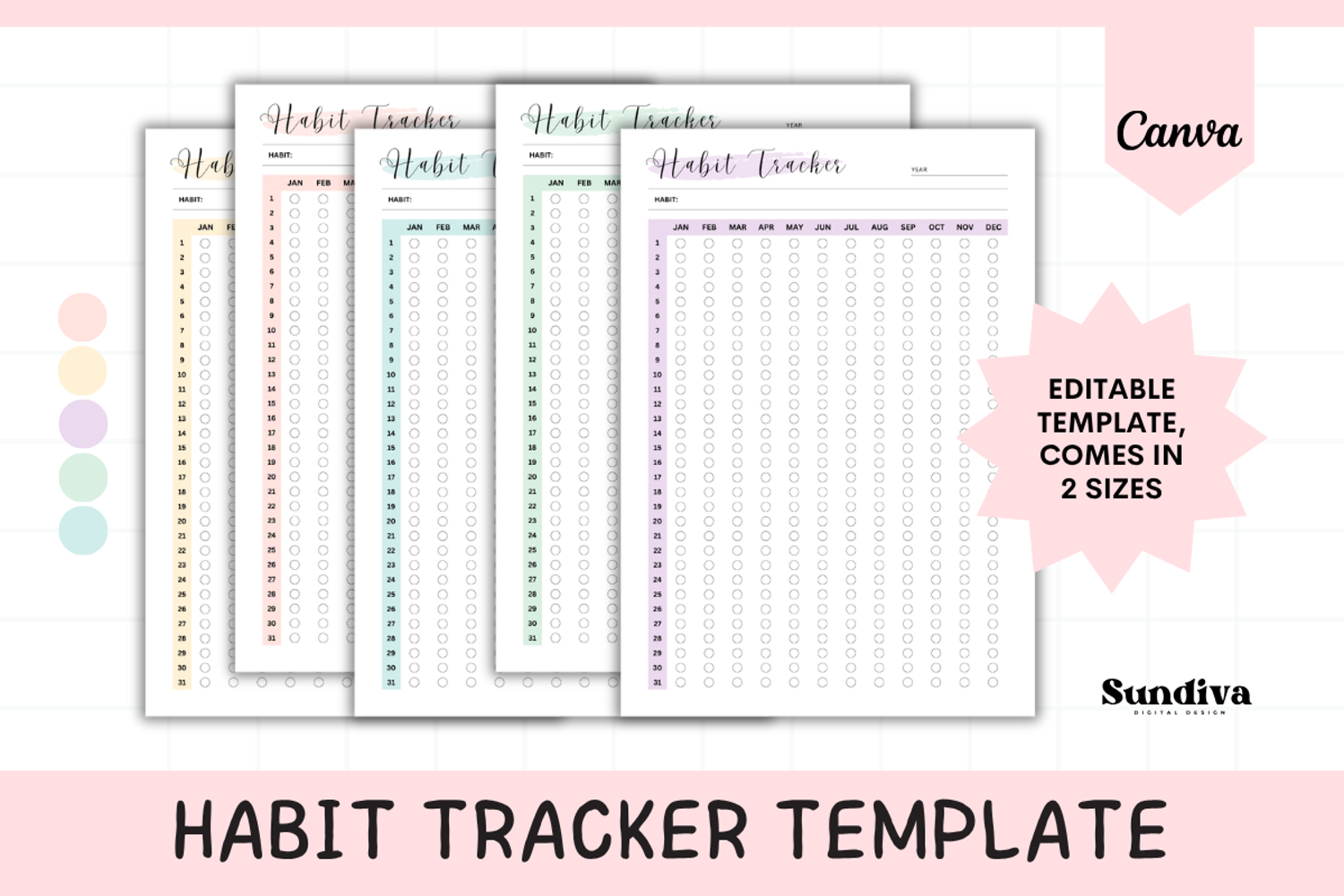 Track one powerful habit every single day of the year with this Annual Habit Tracker. Each month (January through December) is laid out with days 1–31, giving you a complete 12-month view of your progress in one place.