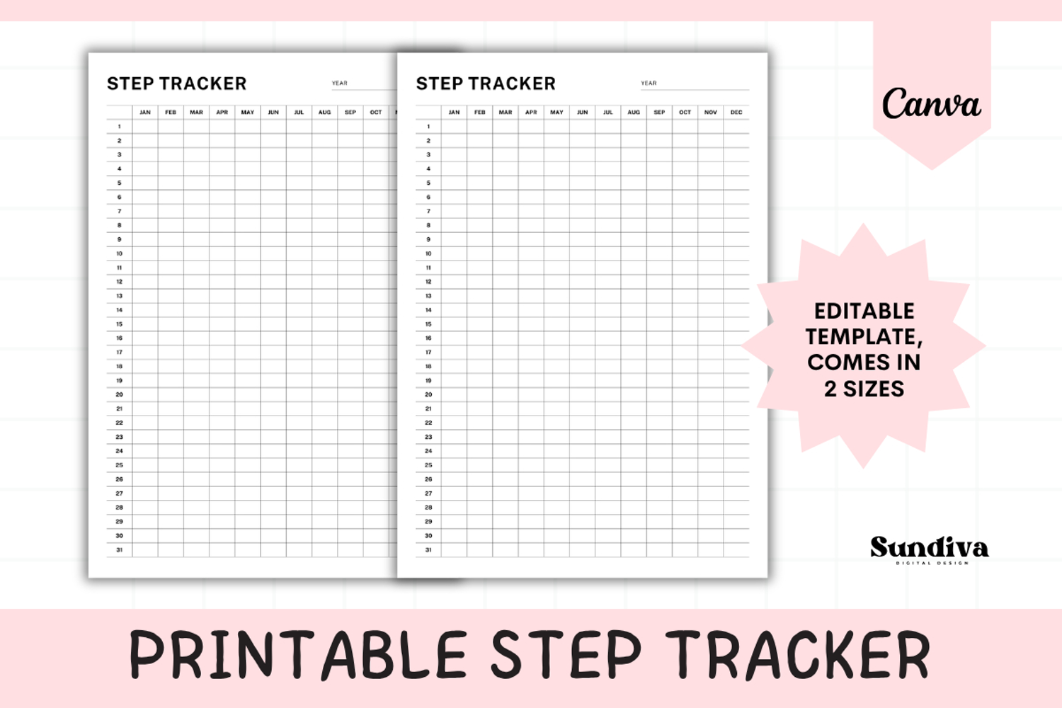 Step Tracker Editable Template 1 | Annual Full-Year Grid