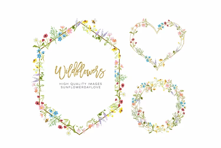 Similar Design Products to Frame Watercolor Wildflowers clipart, Geometric clipart