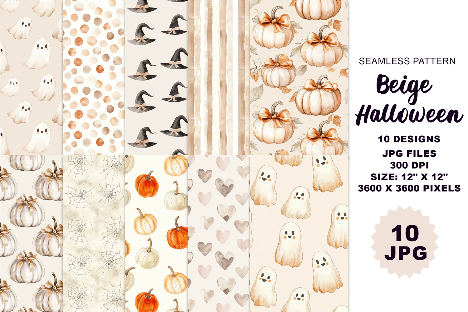 Beige Halloween Watercolor Seamless Neutral Patterns 10 JPG example image 1