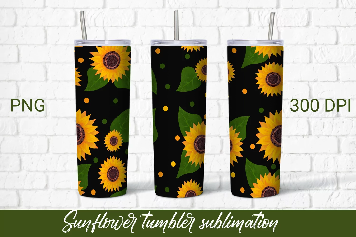 This modern sunflower tumbler sublimation design comes in the following formats: