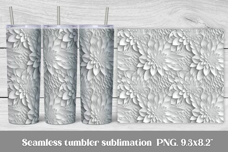 3d white flower seamless tumbler design, 3d seamless, 3d flower sublimation tumbler wrap 20 Oz, 3d flower tumbler design, 3d flower sublimation.
