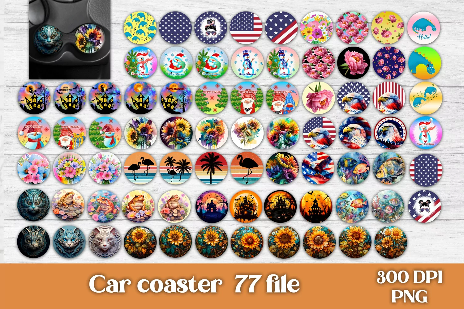 • 77 PNG car coaster, print size 2.56* 2.56 inch, 300 dpi.