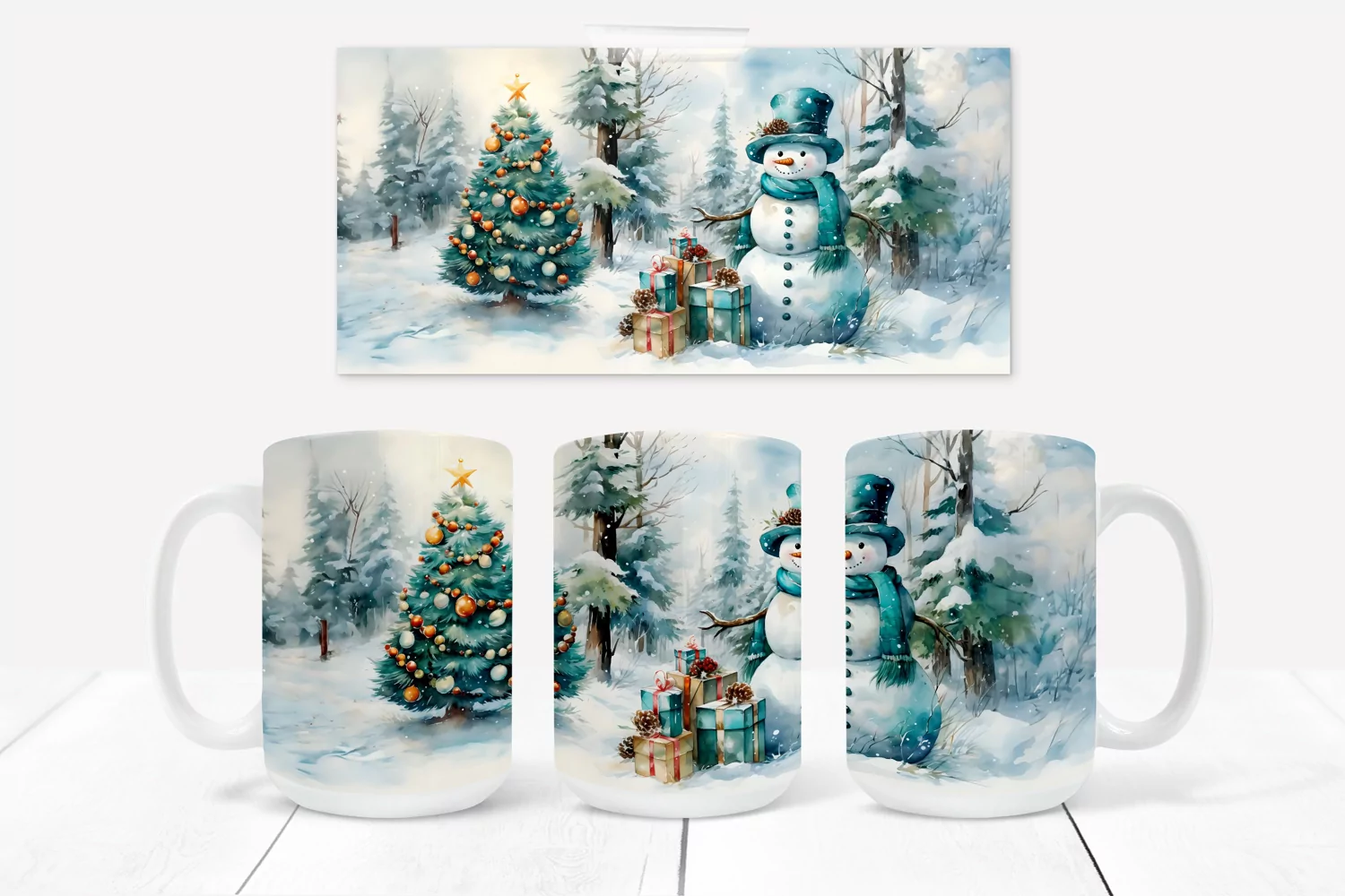 Christmas snowman mug sublimation design wrap 15 Oz, Christmas mug wrap design, Christmas snowman sublimation.