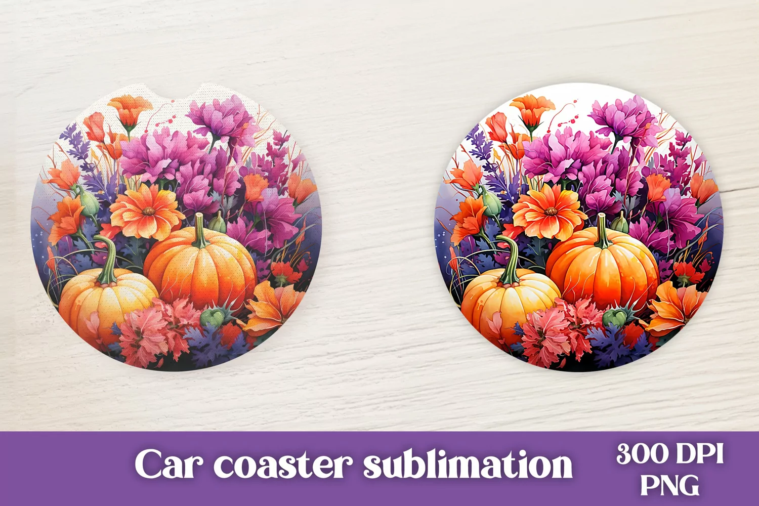 Fall car coaster sublimation design bundle, fall pumpkin car coaster, fall pumpkin flower sublimation.