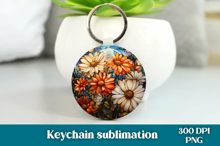 Flower keychain sublimation design, flower stained glass keychain, floral keychain.