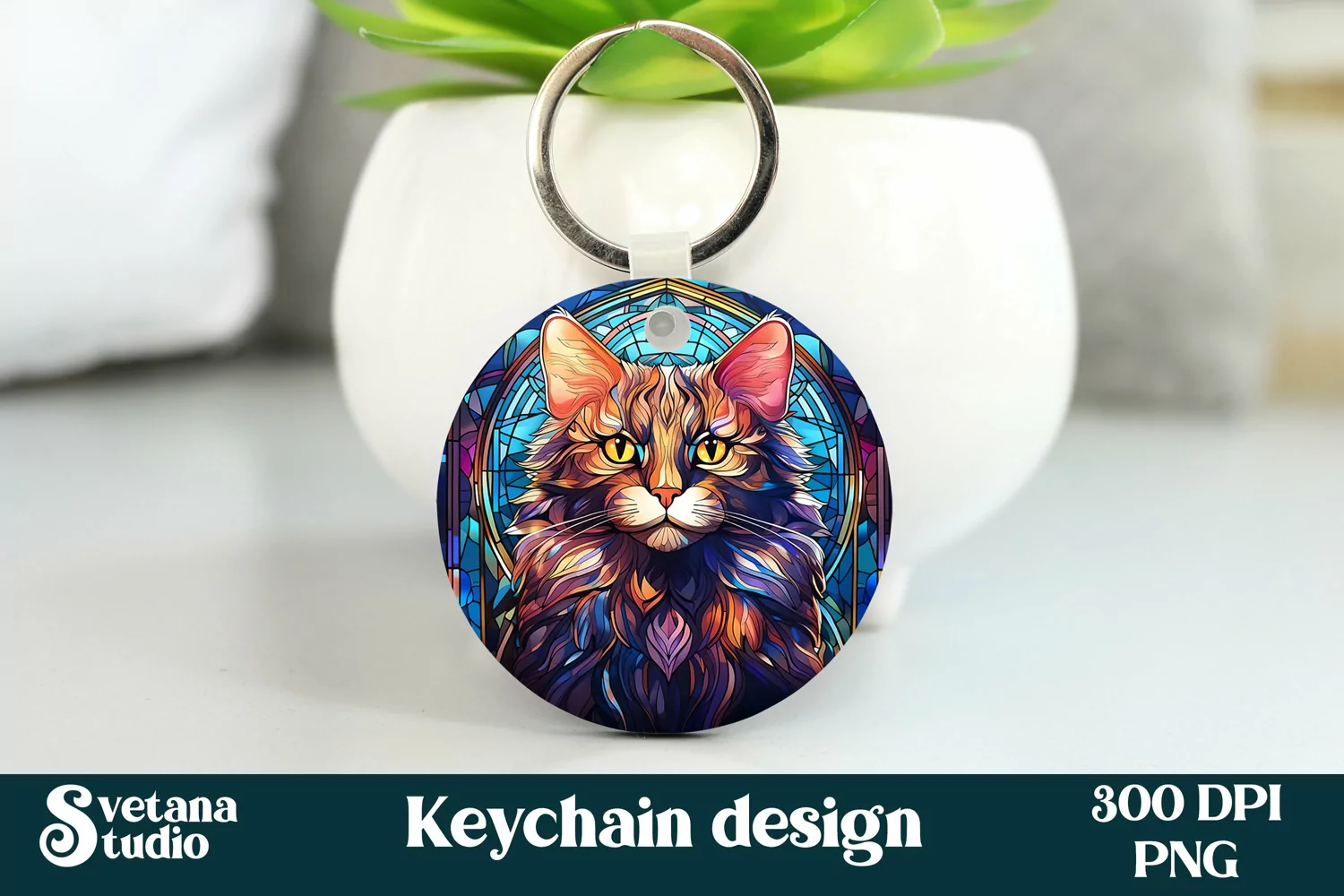 Cat keychain design | Stained glass keychain PNG