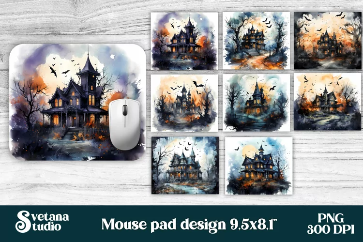 Use these Halloween haunted house mouse pad sublimation designs to create mouse pad for you and your friends.