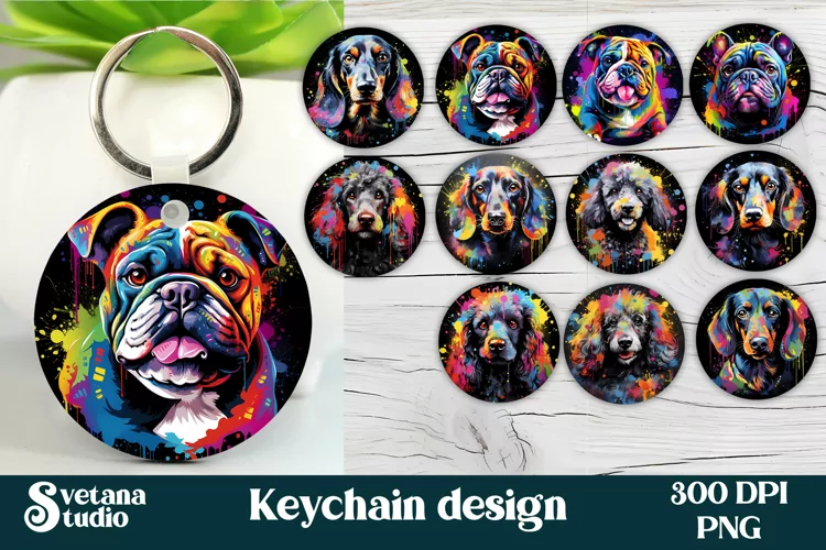 Rainbow dog keychain bundle sublimation design, rainbow dog bundle keyring PNG, animal keychain.