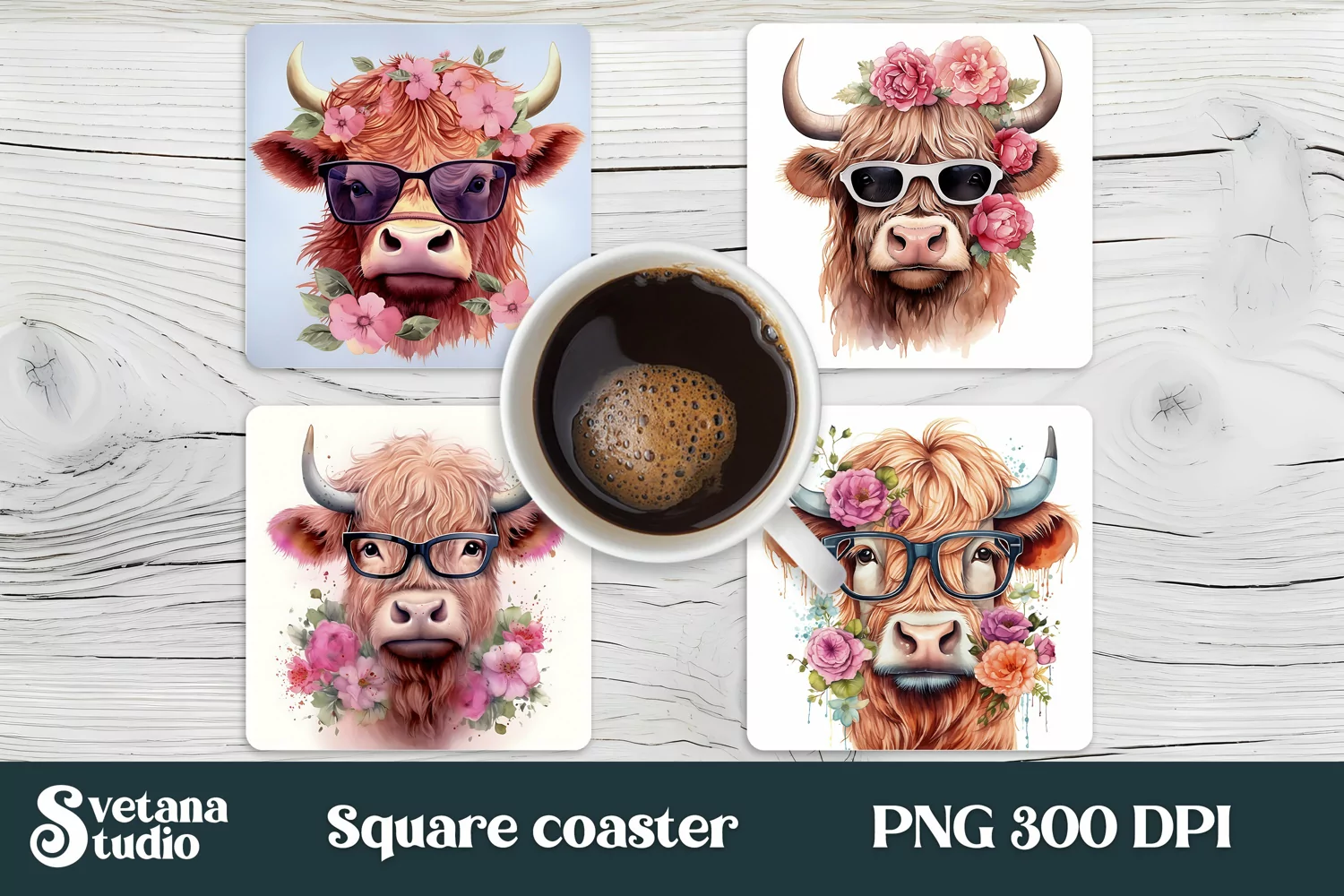Similar Design Products to Highland cow square coaster PNG | Cow coaster sublimation