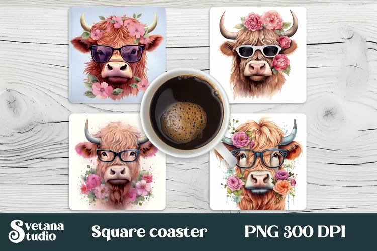 Use these highland cow square coaster sublimation designs to create square coaster for you and your friends.