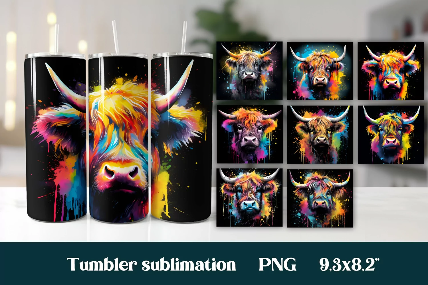 Rainbow highland cow tumbler sublimation bundle