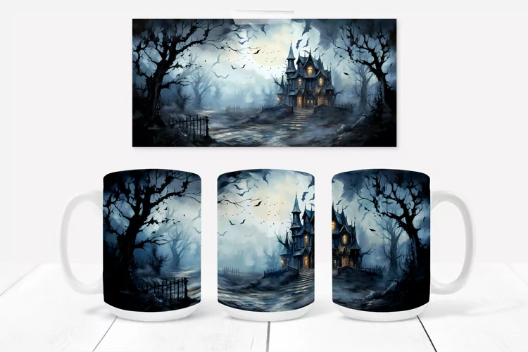 Halloween haunted house mug sublimation