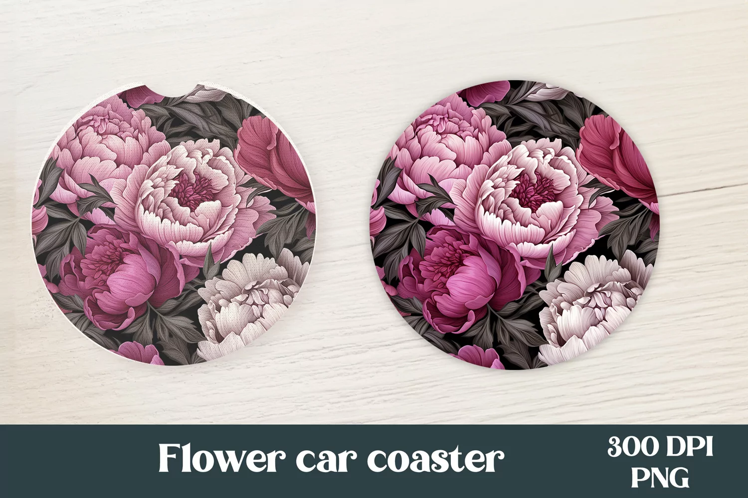 Flower peonies car coaster sublimation design, flower car coaster, peonies sublimation.