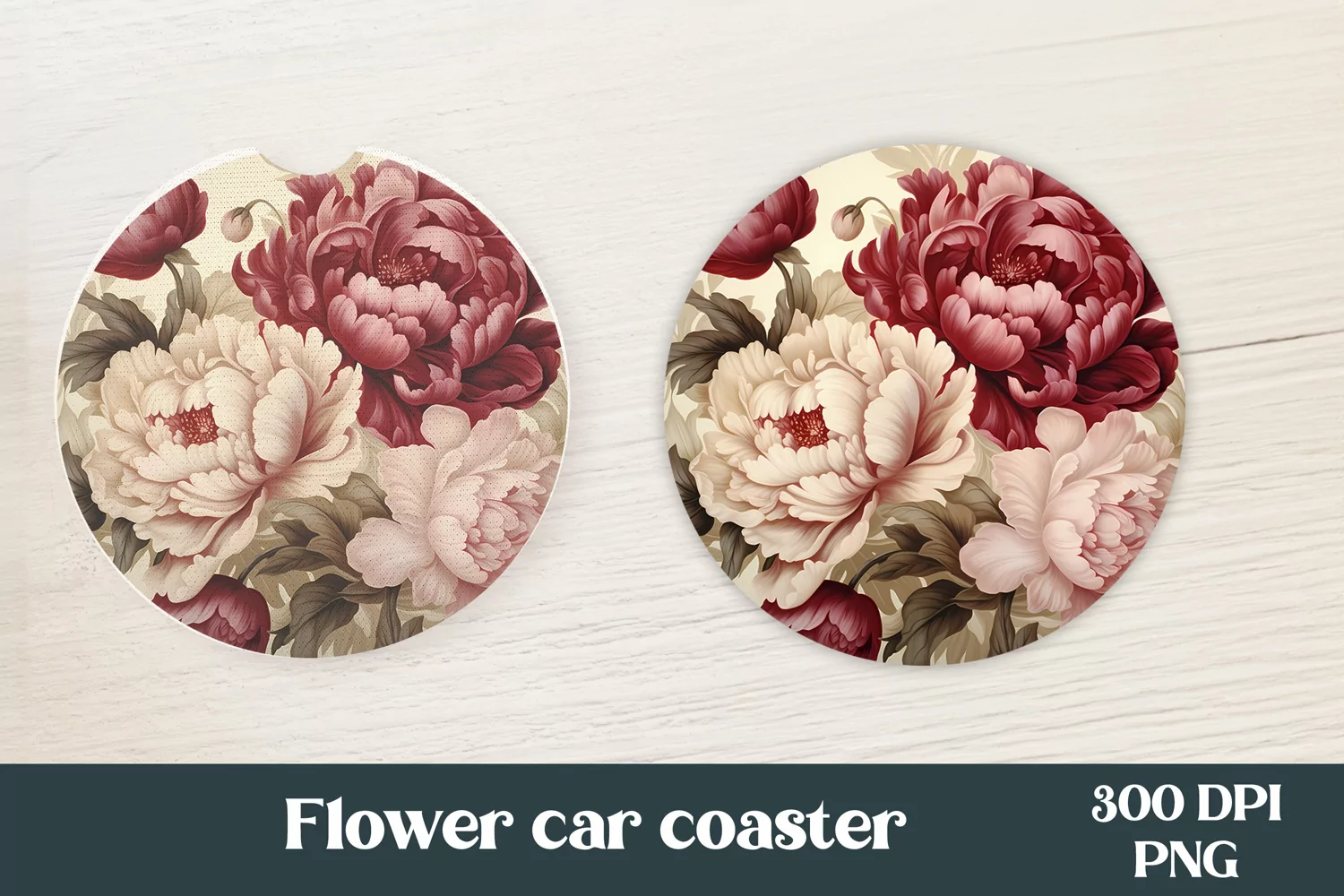 Flower peonies car coaster sublimation design, flower car coaster, peonies sublimation.