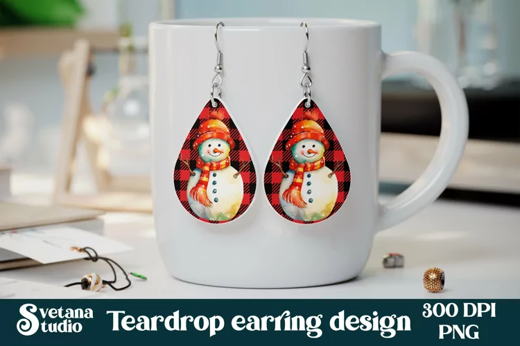This Christmas snowman teardrop earring sublimation design comes in the following formats: