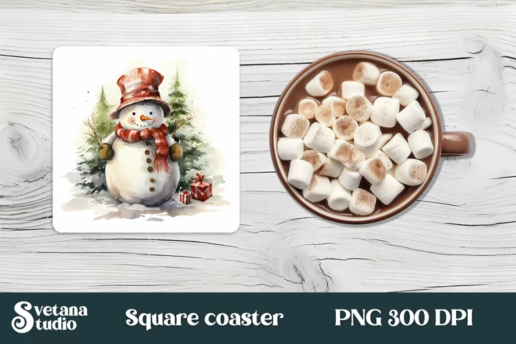Christmas snowman square coaster sublimation design, Christmas snowman sublimation design, Christmas snowman coaster.