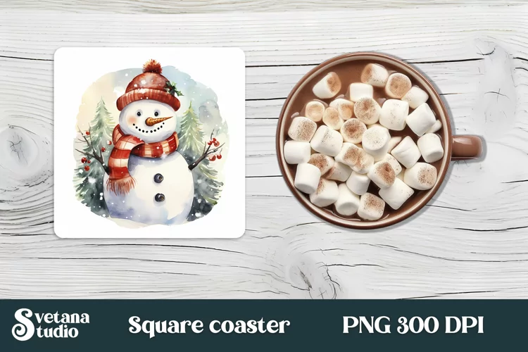 Christmas snowman square coaster sublimation design, Christmas snowman sublimation design, Christmas snowman coaster.