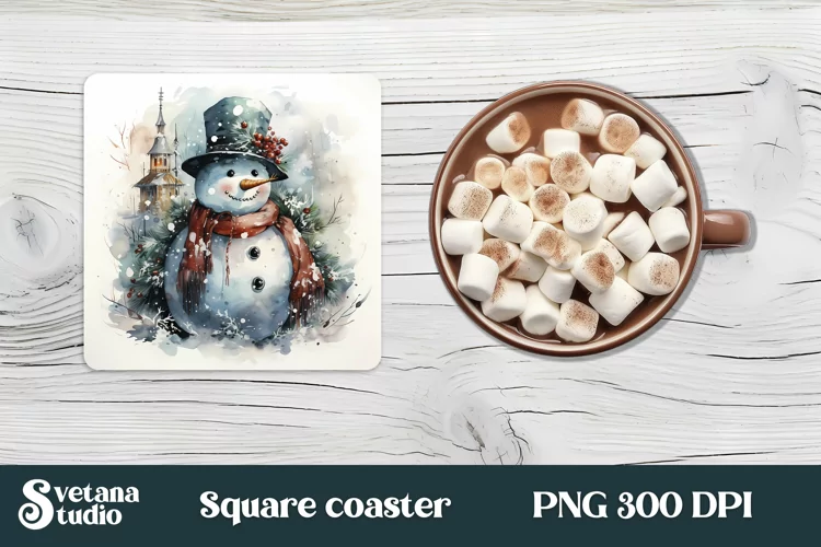Christmas snowman square coaster sublimation design, Christmas snowman sublimation design, Christmas snowman coaster.