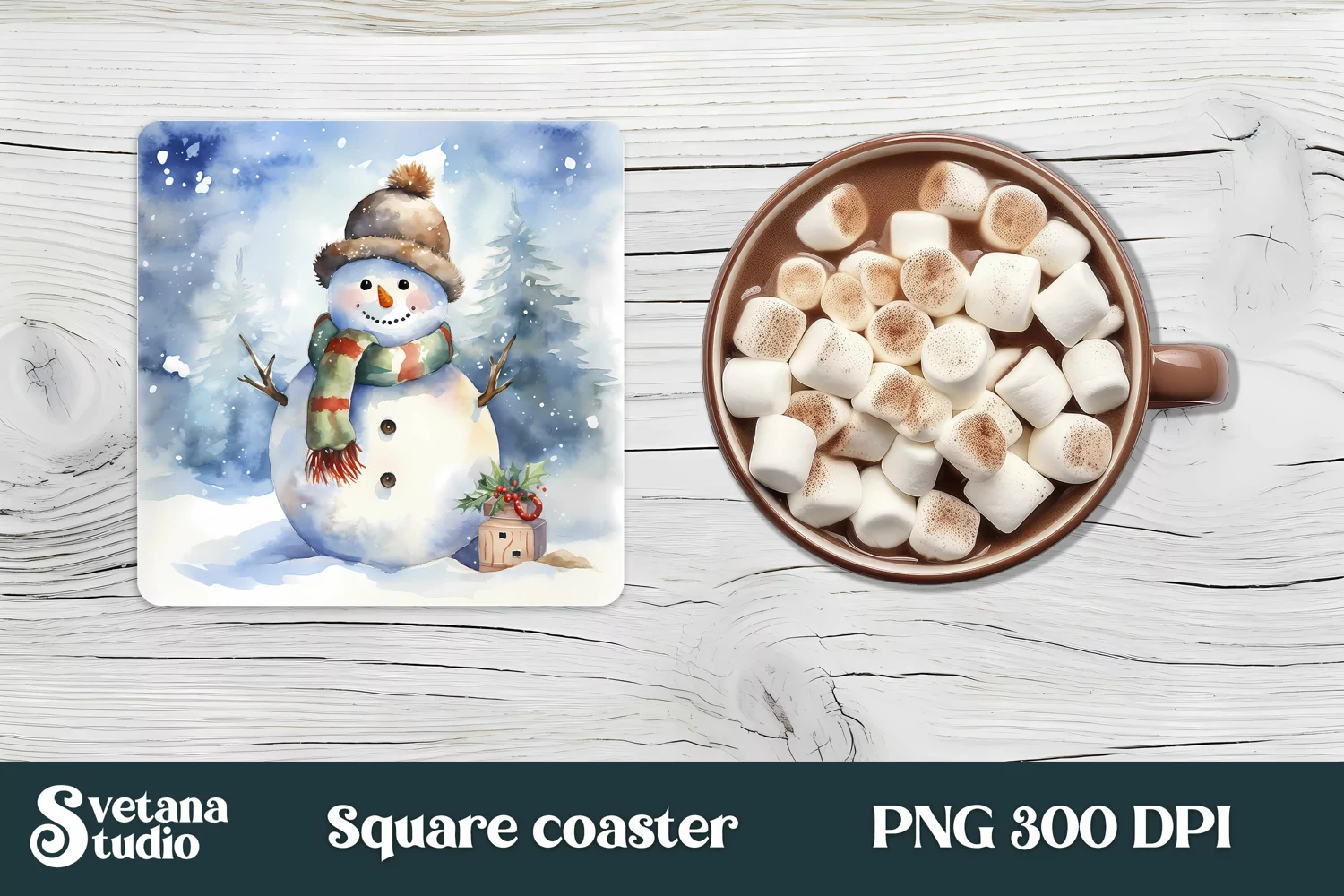 Christmas snowman square coaster sublimation design, Christmas snowman sublimation design, Christmas snowman coaster.