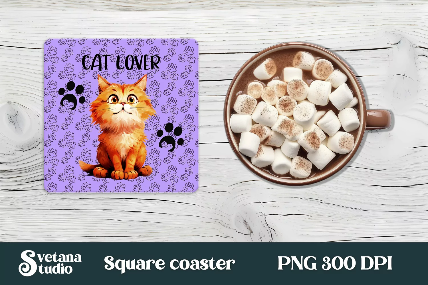This cat lover coaster sublimation design comes in the following formats: