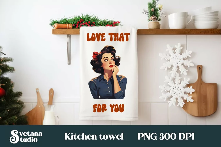 Use these retro woman kitchen towel sublimation designs to create kitchen towel for you and your friends.