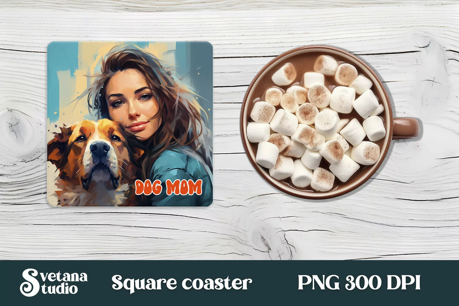 Dog mom square coaster sublimation design, dog mom sublimation design, dog coaster PNG design.