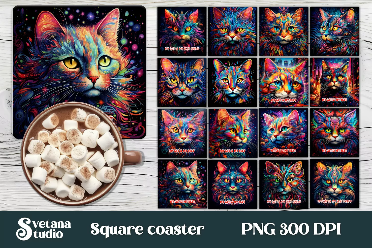 This cat coaster sublimation design comes in the following formats:
