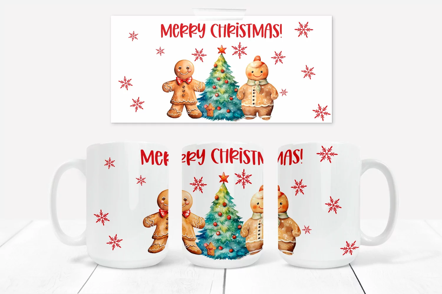 Christmas gingerbread man mug sublimation design wrap 15 Oz, Christmas mug wrap design, Christmas gingerbread man sublimation.