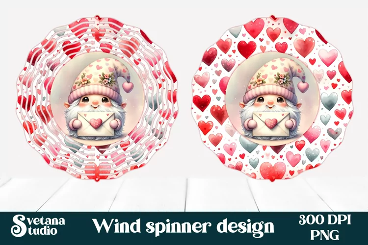 Use these Valentines gnome wind spinner sublimation designs to create wind spinner for you and your friends.
