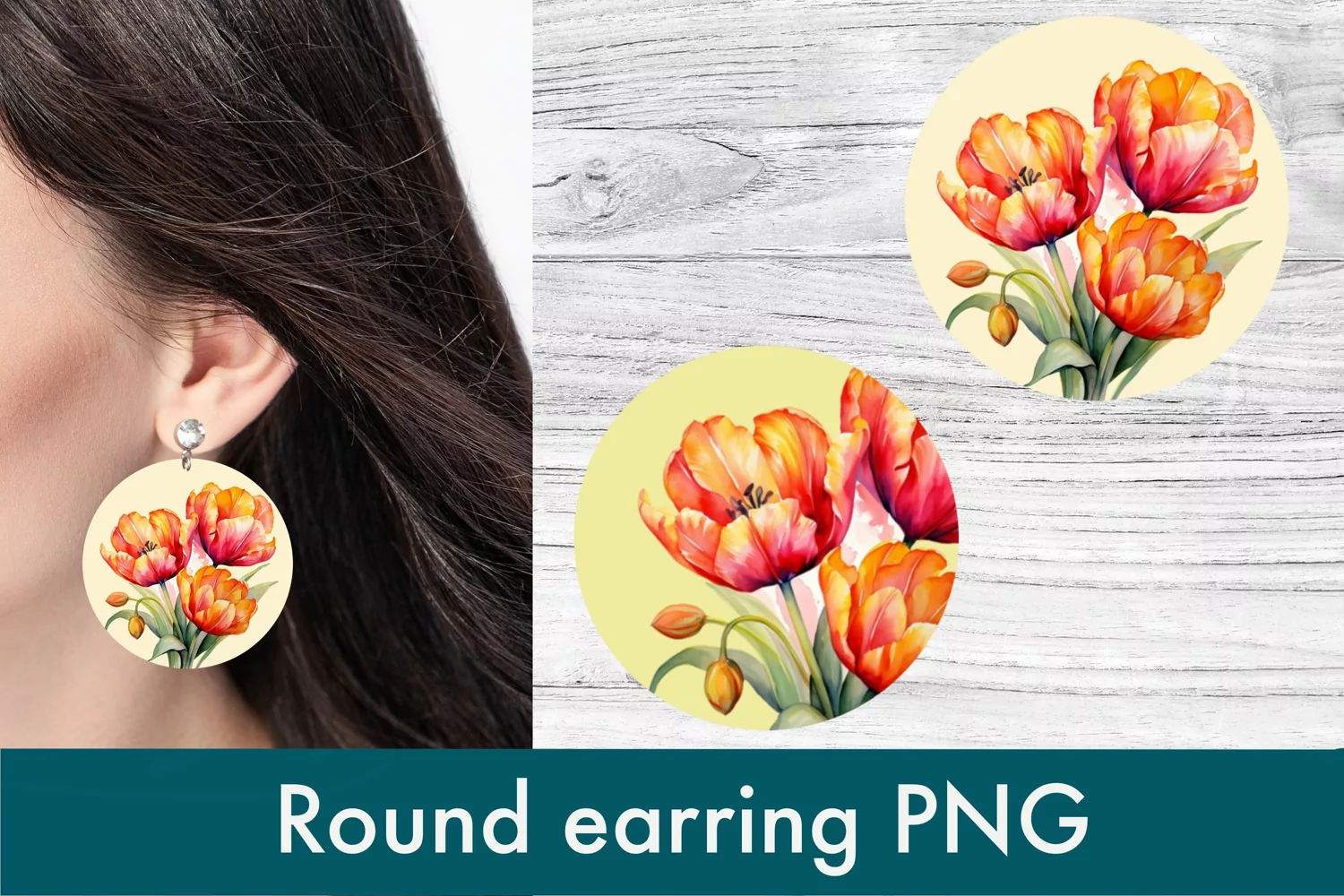 Round earring sublimation | Flower tulip earring PNG design example image 1