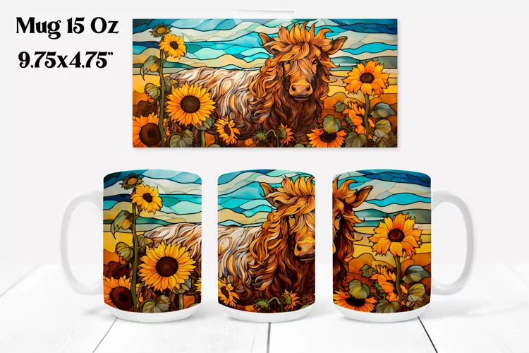 Mug Sublimation Mug Sublimation Design Cofee Mug Stained Glass Mug Wrap Animal Mug Wrap Farm Mug Sublimation Cow Mug Wrap Cow Mug Sublimation Cow Stained Glass Sublimation Highland Cow Stained Glass Mug