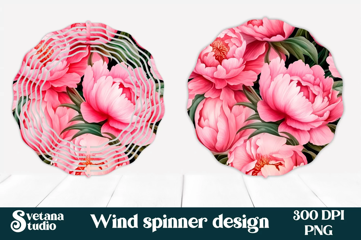 Flower peonies wind spinner sublimation PNG design example image 1