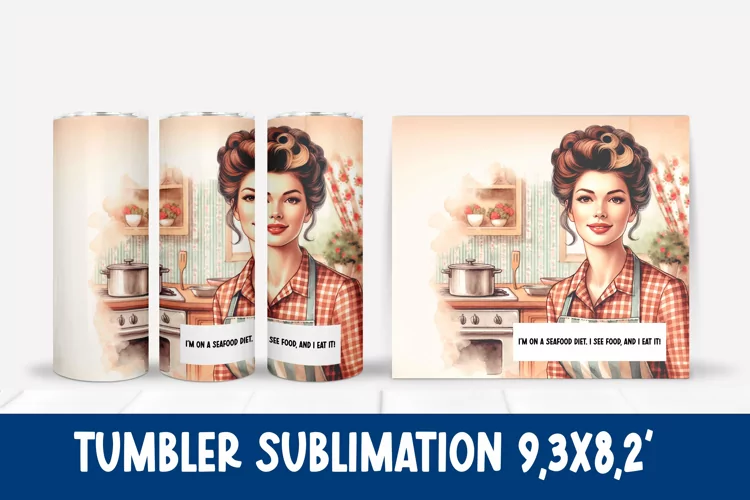 Retro woman tumbler sublimation design wrap 20 Oz, pin up girl kitchen tumbler sublimation design, retro woman sublimation.
