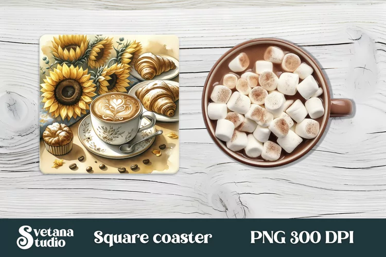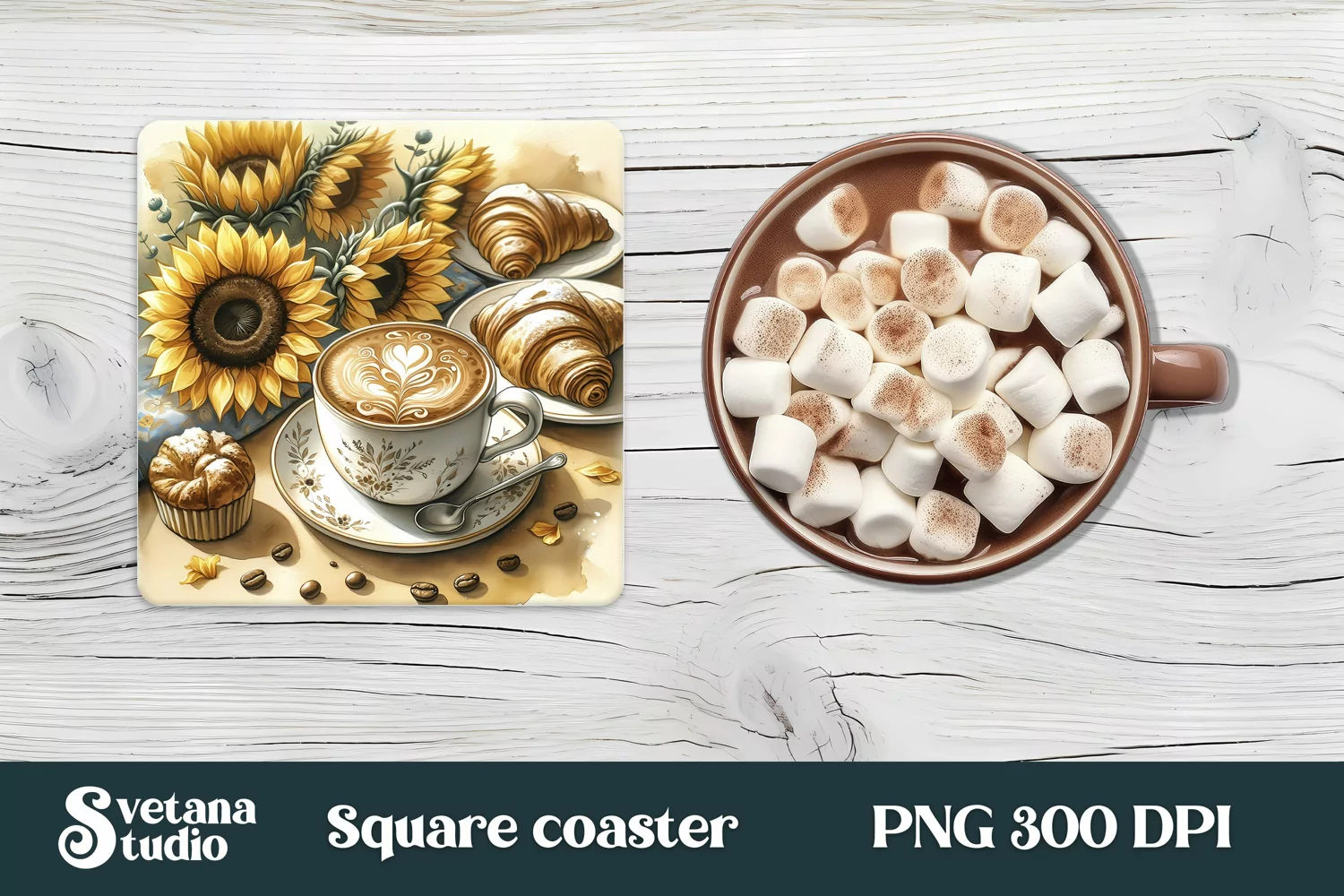 Hot coffee sunflower square coaster sublimation PNG design example image 1