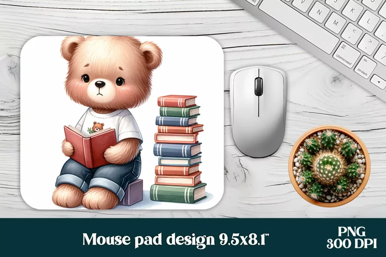Cute bear mouse pad sublimation design, books animal sublimation design, animal mousepad sublimation.