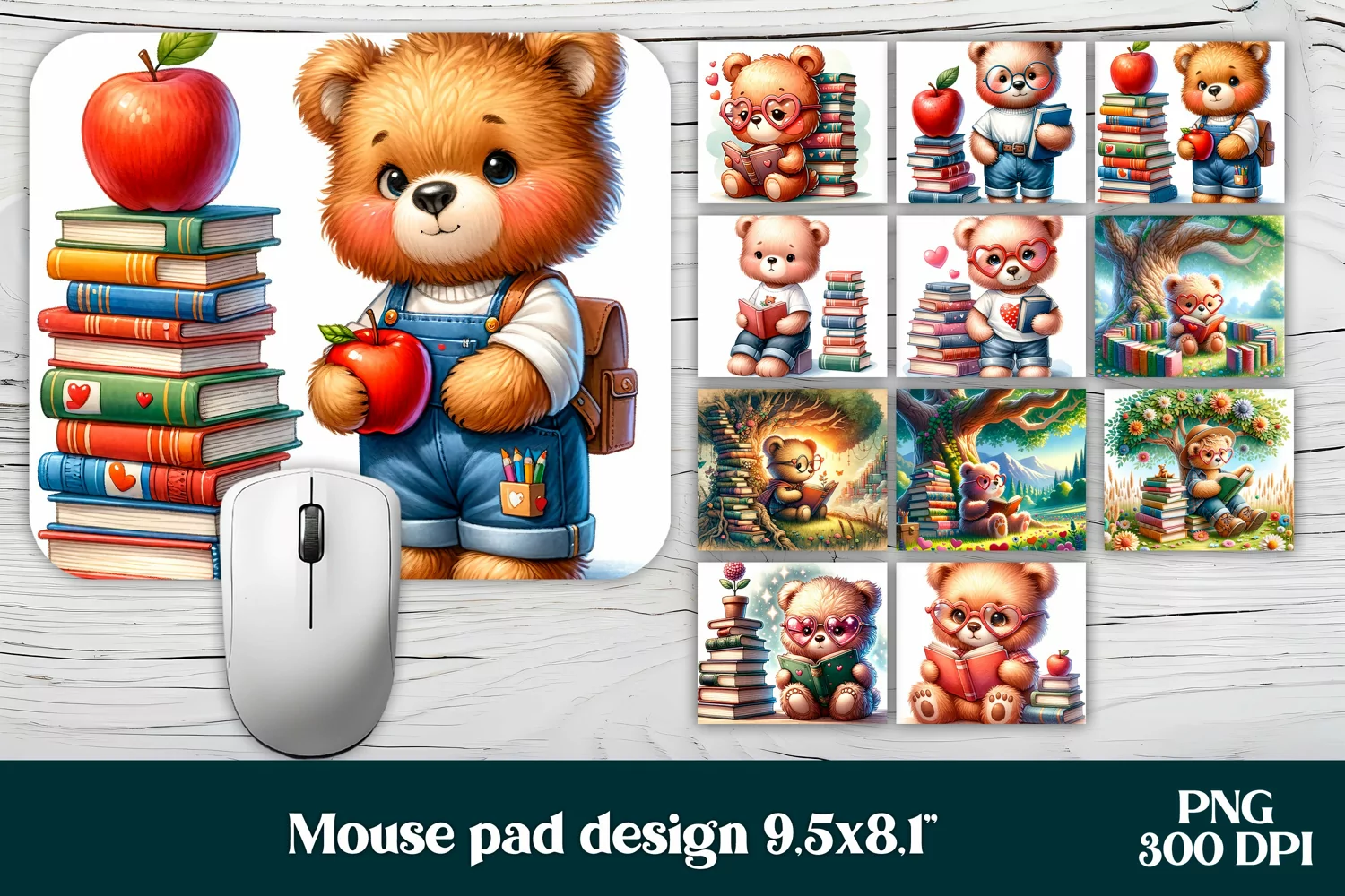Bear mouse pad bundle | Animal mousepad | Books mouse pad