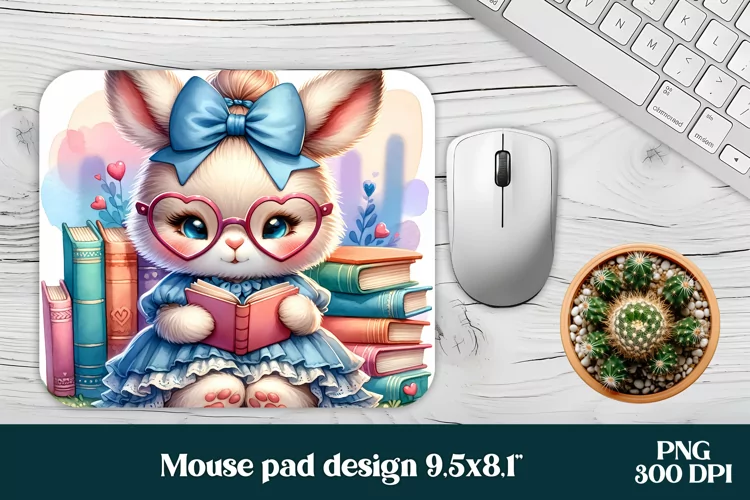 Cute bunny mouse pad sublimation design, books animal sublimation design, animal mousepad sublimation.