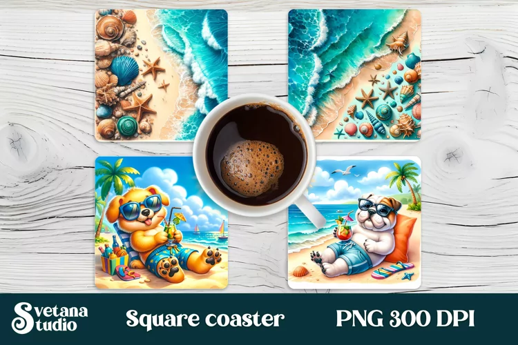 Coaster Dog Coaster Animal Coaster Square Coaster Tropical Coaster Coaster Sublimation Summer Coaster Square Coaster Png Square Coaster Love Beach Coaster