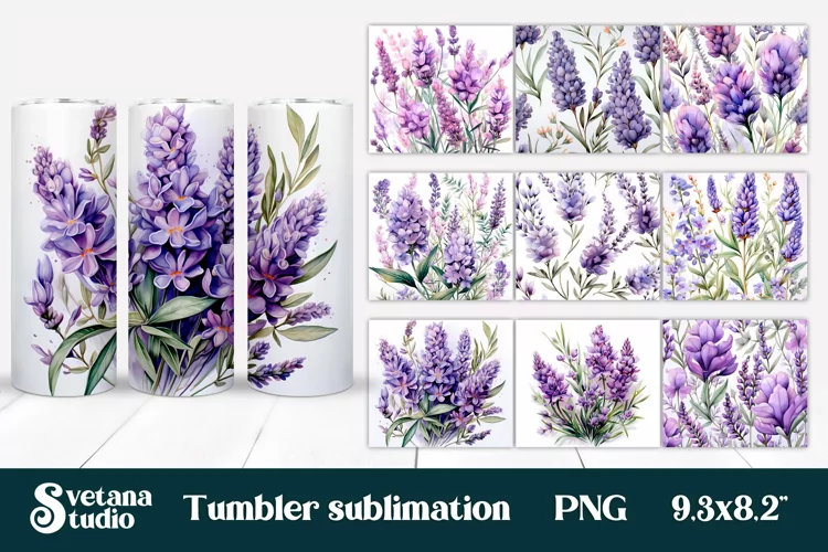 Flowers tumbler wrap | Lavender tumbler sublimation bundle