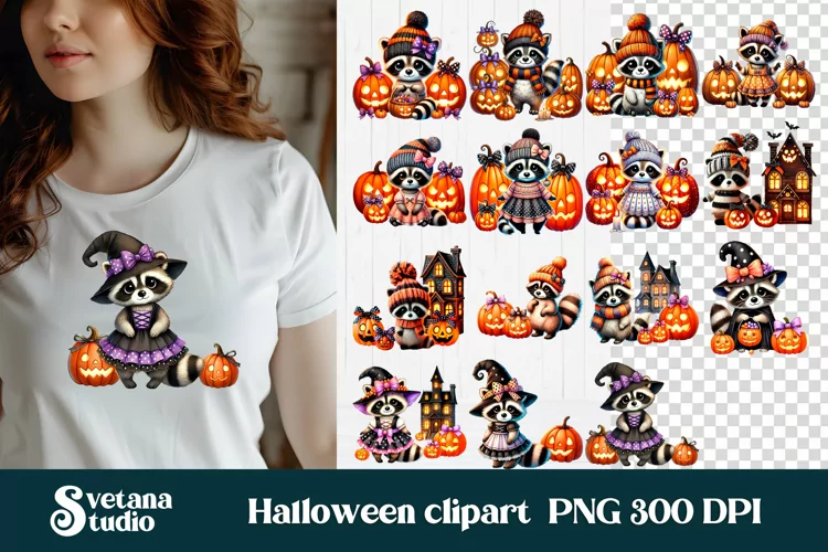 Halloween raccoon clipart bundle | Halloween sublimation PNG