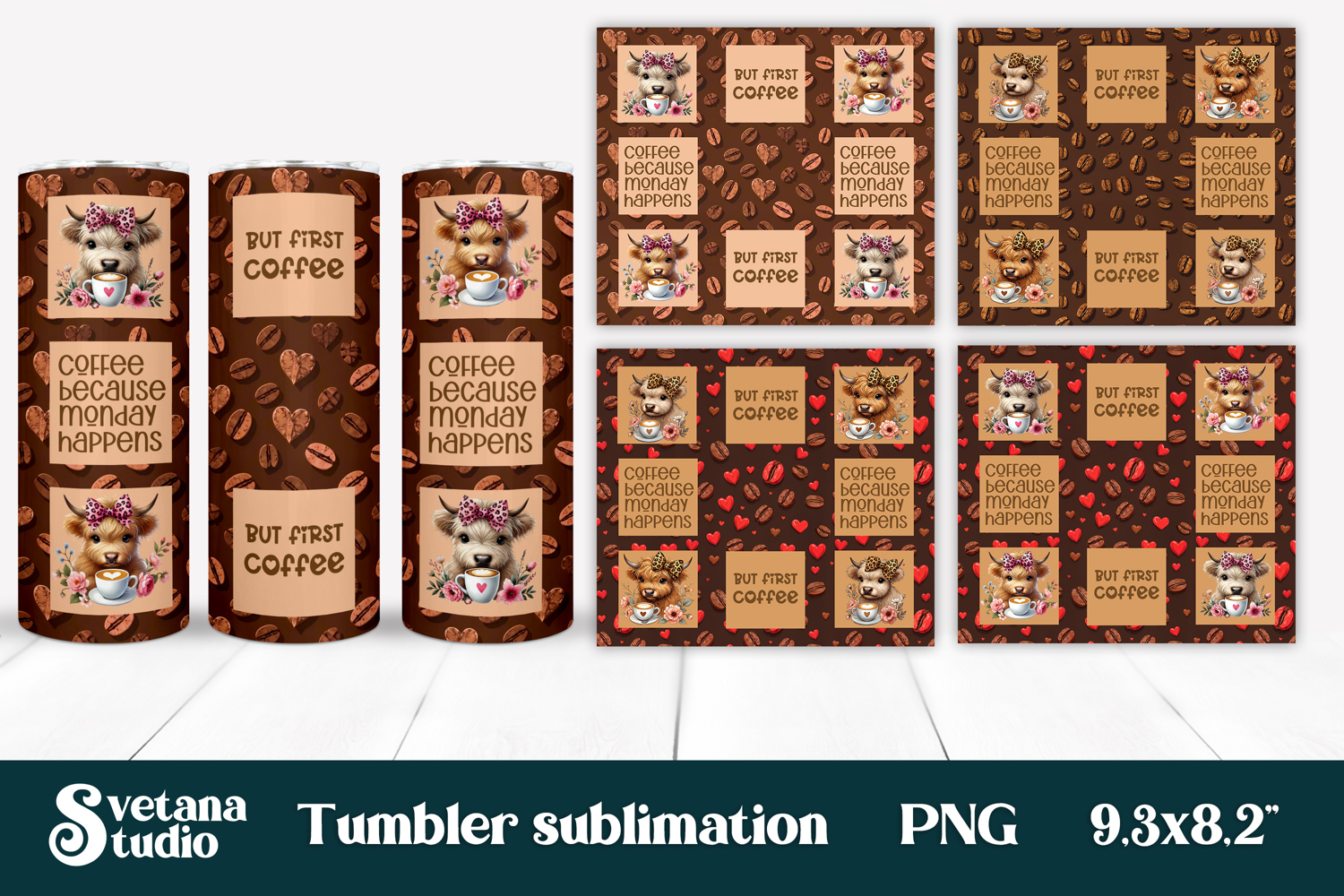 Coffee Pattern Coffee Tumbler Wrap Farmhouse Tumbler Design Highland Cow Tumbler Coffee Quotes Sublimation Coffee Quotes Tumbler Cute Cow Tumbler Png Printable Coffee Wrap Rustic Coffee Tumbler Highland Cow Coffee Mug Design