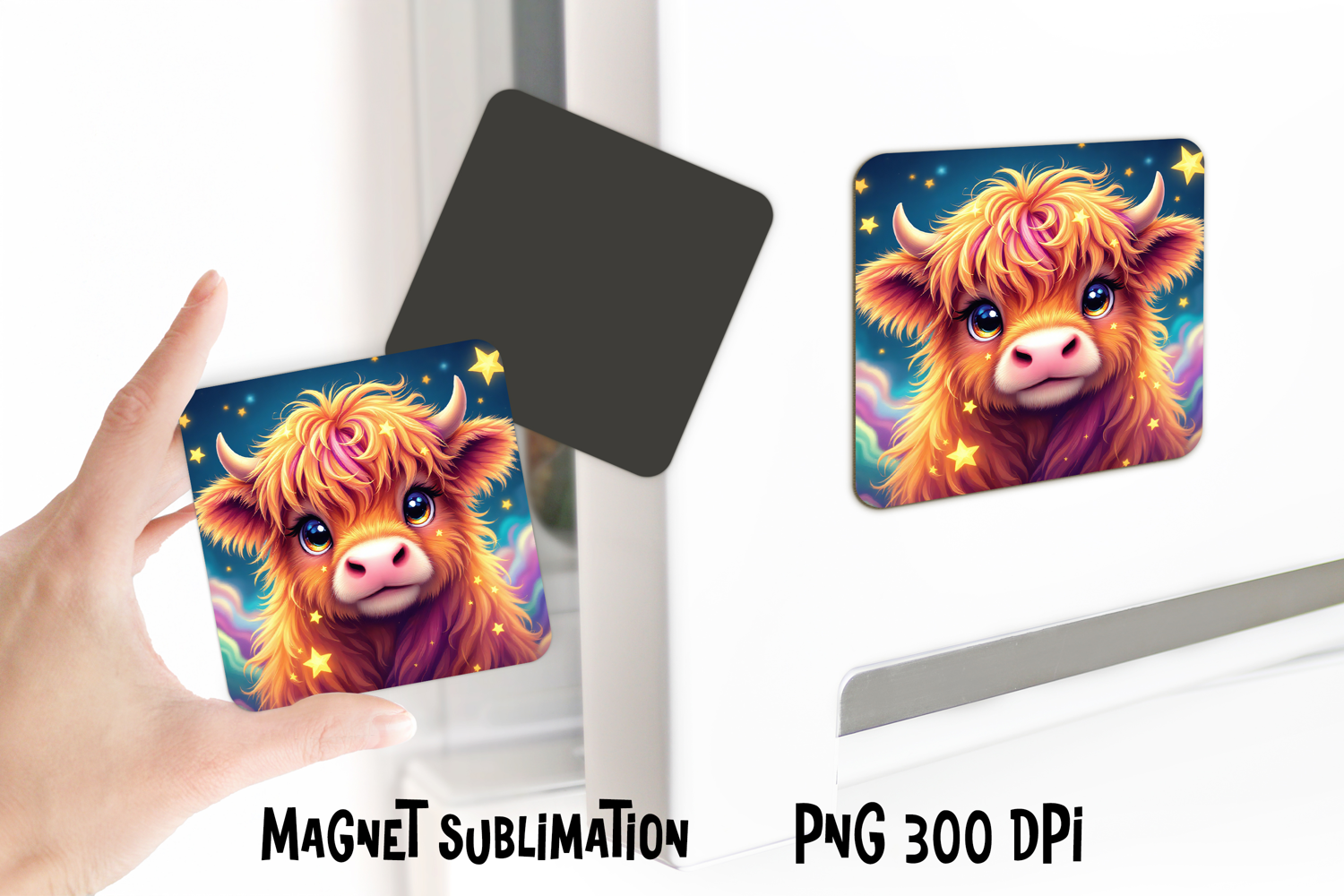 Use this sweet pastel highland cow magnet sublimation design to create adorable magnets for yourself or as charming gifts for kids, friends, or animal lovers. Perfect for adding a soft, whimsical touch to any magnetic surface or nursery decor.
