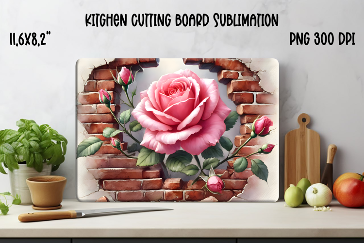 Use this vintage-style rose in wall sublimation design to create elegant cutting boards for yourself or as unique gifts. Perfect for floral lovers, romantic kitchen decor, or adding a timeless touch to your product line.