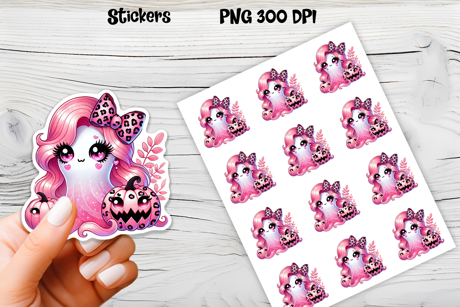 Cute Halloween ghost stickers printable PNG, pink Halloween ghost PNG, printable Halloween sticker.
